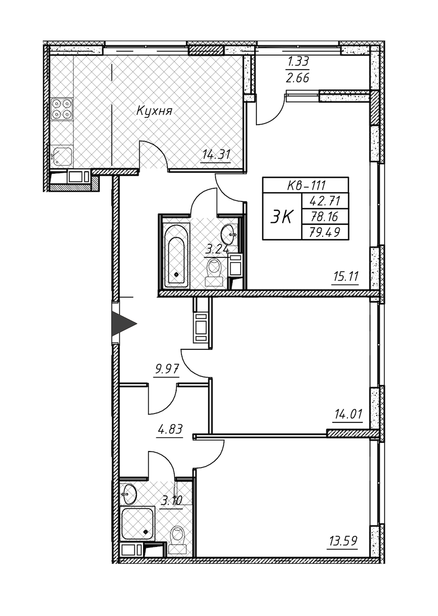 • Площадь кухни14,31 м2