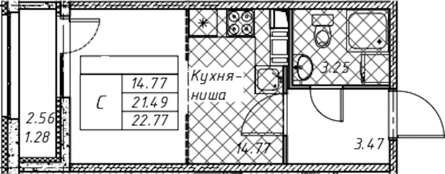Квартира-студия на 8-ом этаже 22,77 кв.м