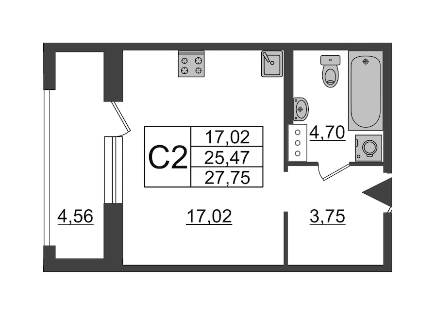 Квартира-студия на 12-ом этаже 28,9 кв.м