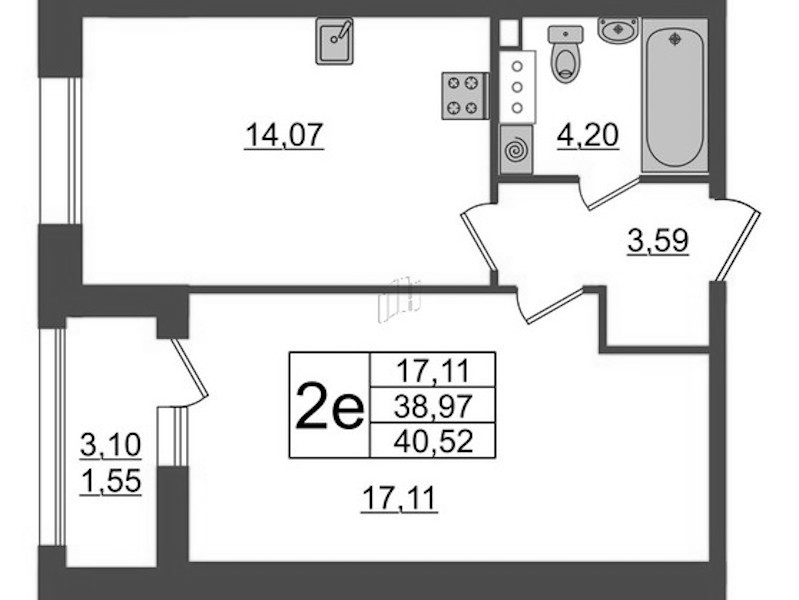 - Площадь40,44 м2