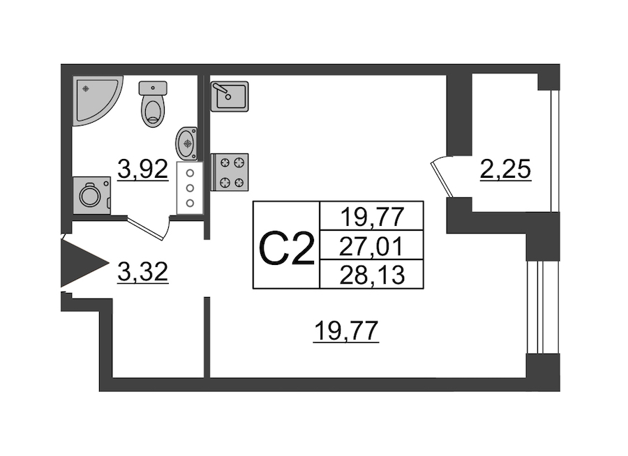 Квартира-студия на 8-ом этаже 29,1 кв.м