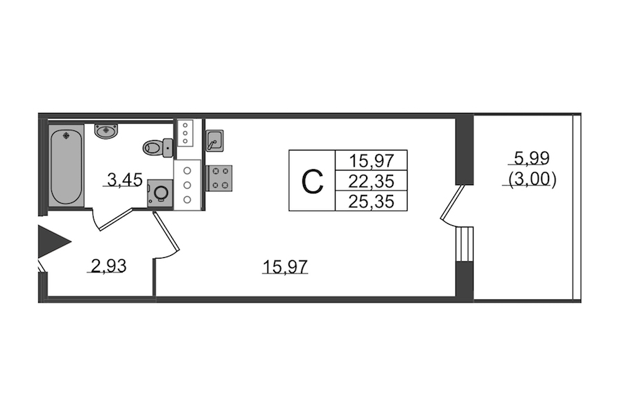 Квартира-студия на 11-ом этаже 25,35 кв.м