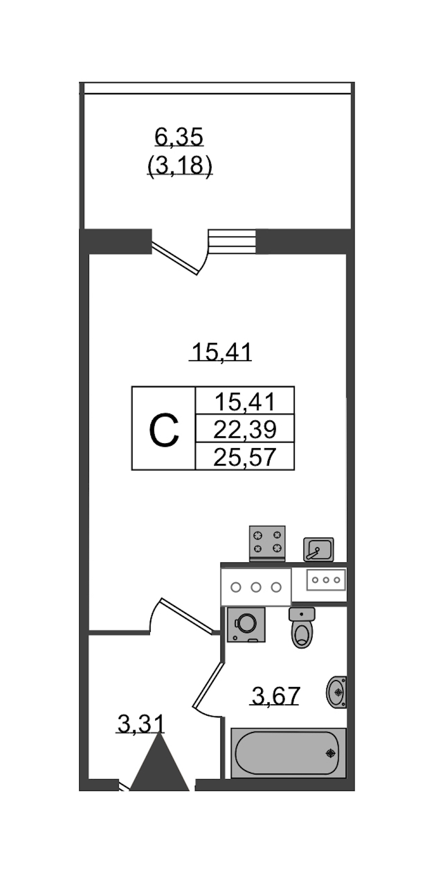 • Площадь25,57 м2