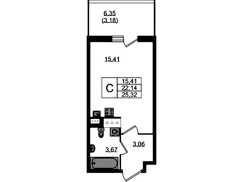 Квартира-студия на 12-ом этаже 25,32 кв.м