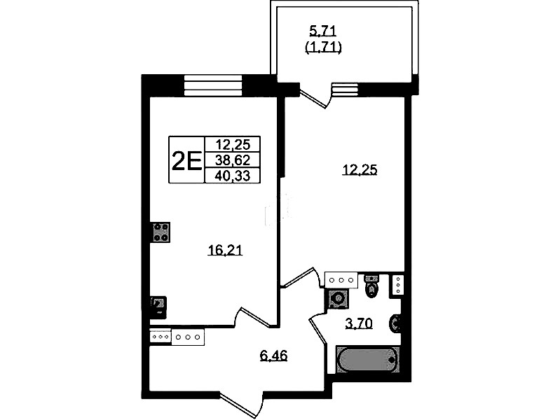 Однокомнатная квартира на 11-ом этаже 40,33 кв.м