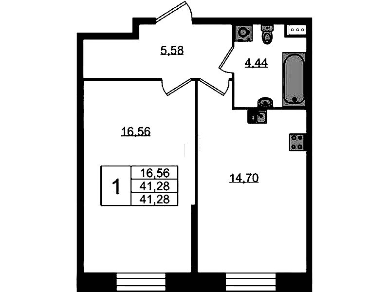 Однокомнатная квартира на 1-ом этаже 40,8 кв.м