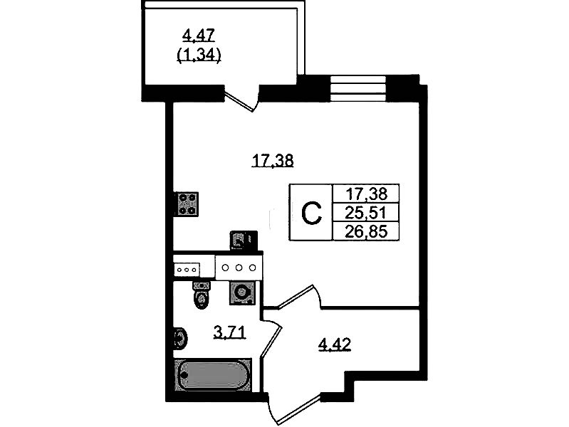 - Площадь26,7 м2
