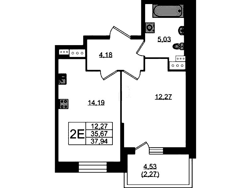 - Площадь37,7 м2