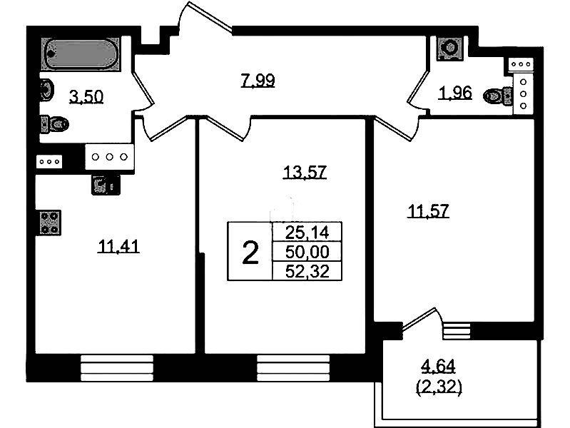 - Площадь51,7 м2