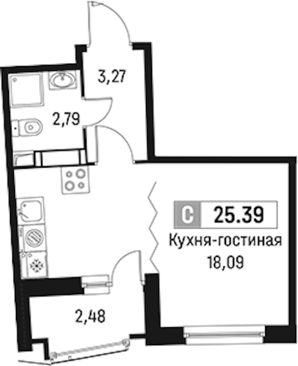 • Площадь25,39 м2