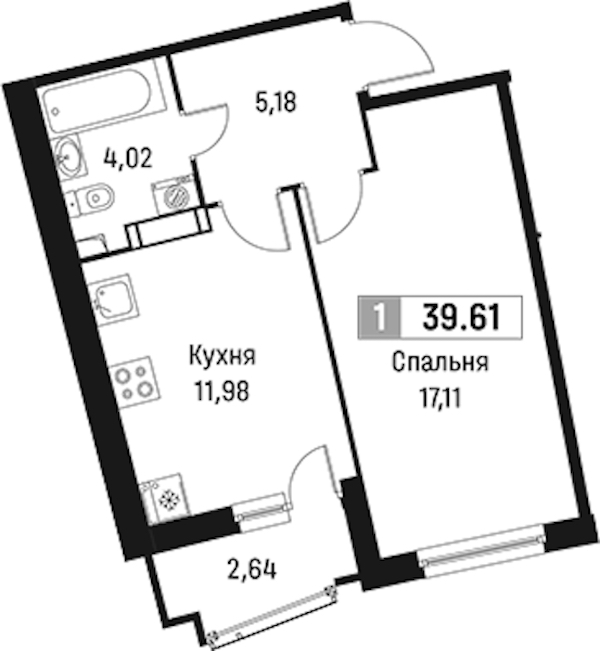 • Площадь39,61 м2