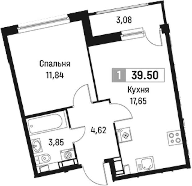 - Площадь39,5 м2