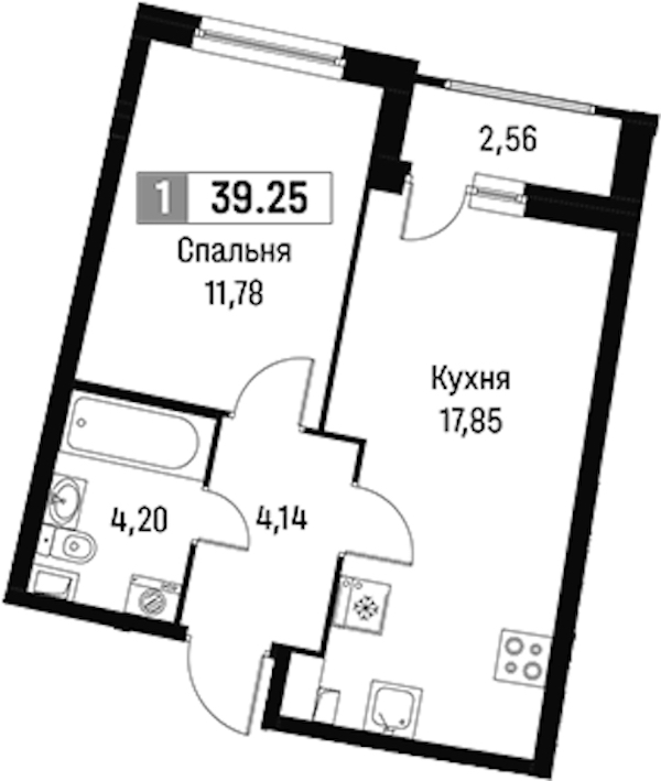 • Площадь39,25 м2