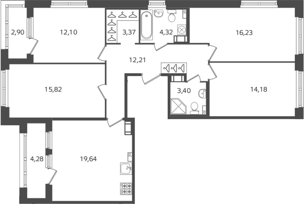• Площадь кухни19,64 м2