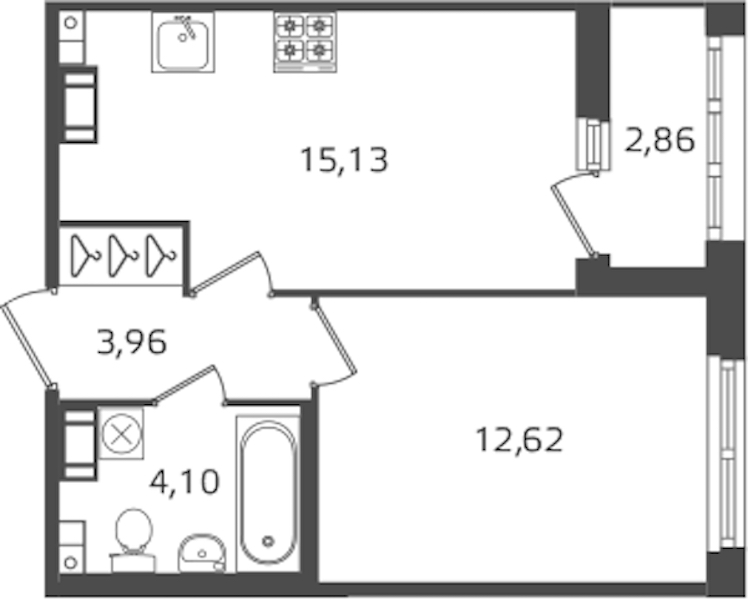 - Площадь кухни15,13 м2