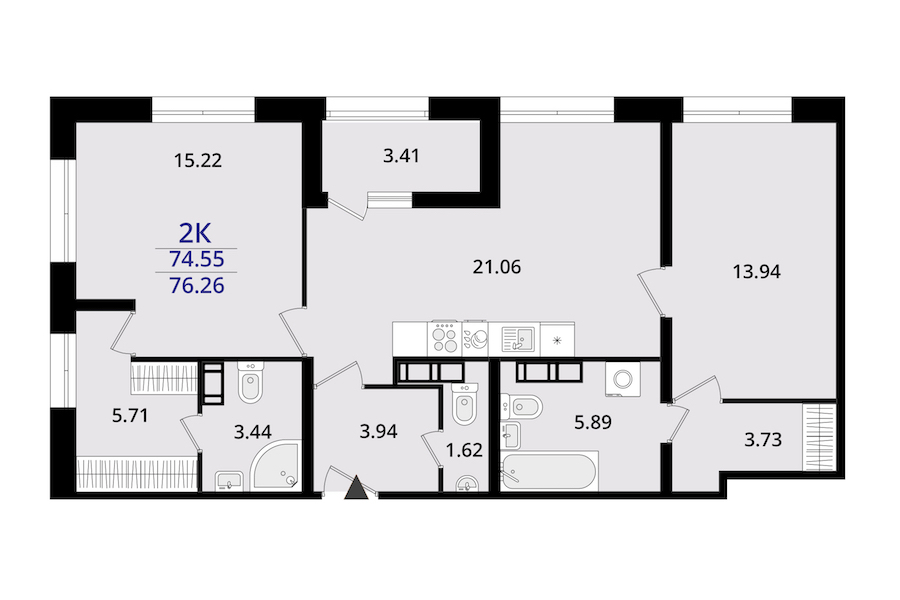 - Площадь76,26 м2