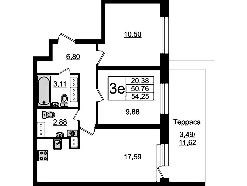 - Площадь54,25 м2