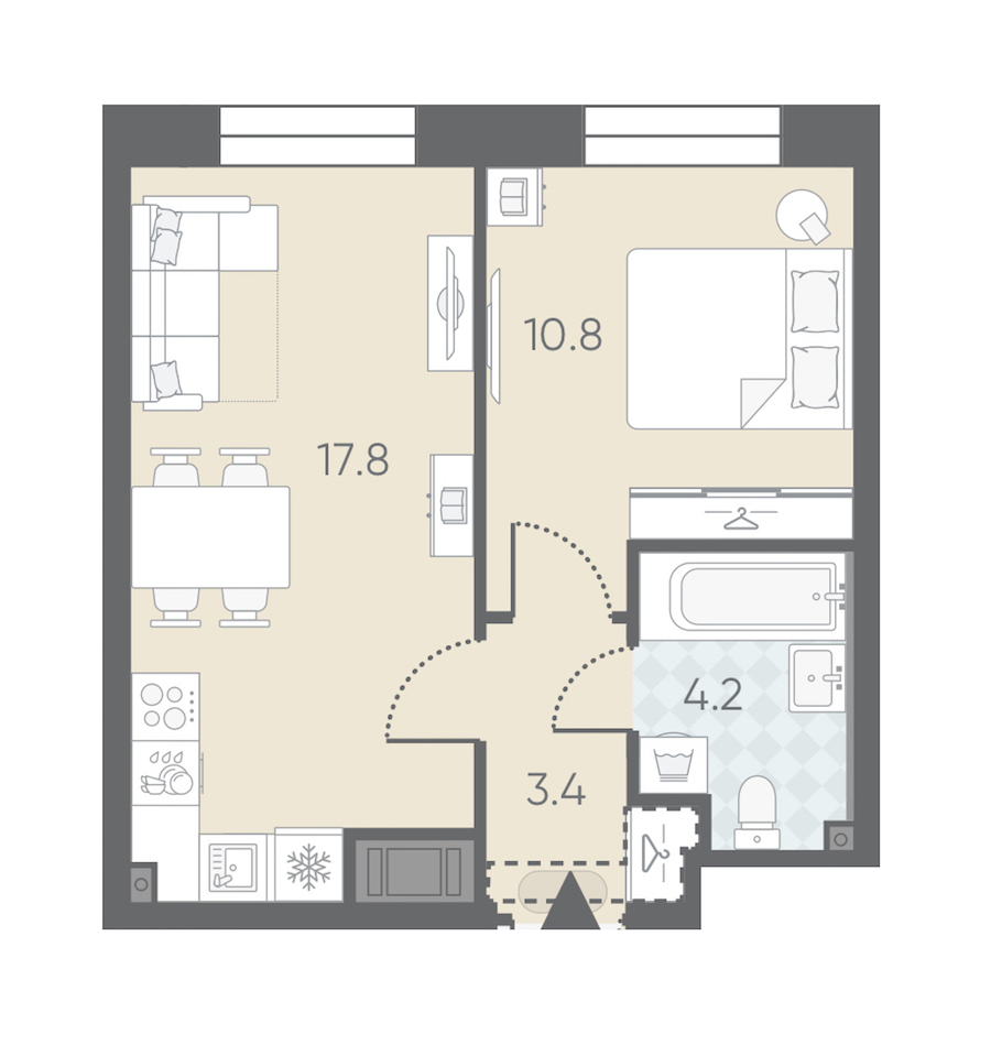 Однокомнатная квартира на 10-ом этаже 36,2 кв.м