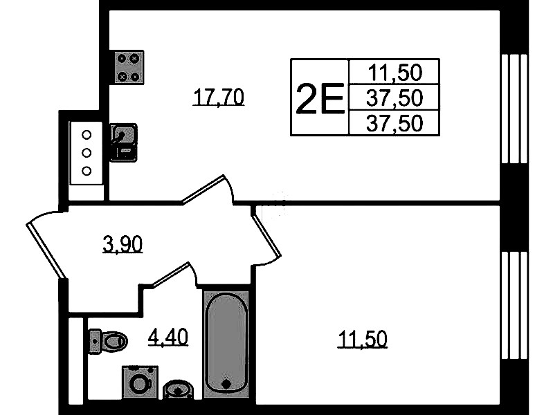 Однокомнатная квартира на 4-ом этаже 37,5 кв.м