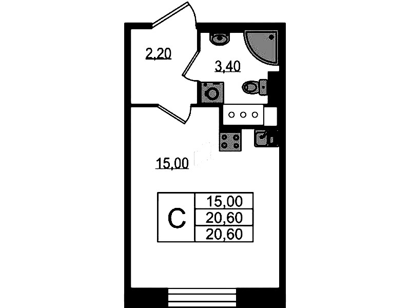 Квартира-студия на 7-ом этаже 20,6 кв.м