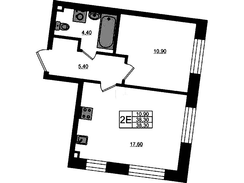 Однокомнатная квартира на 2-ом этаже 38,3 кв.м