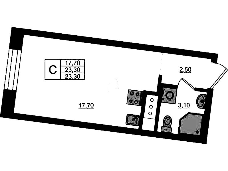 - Площадь23,3 м2