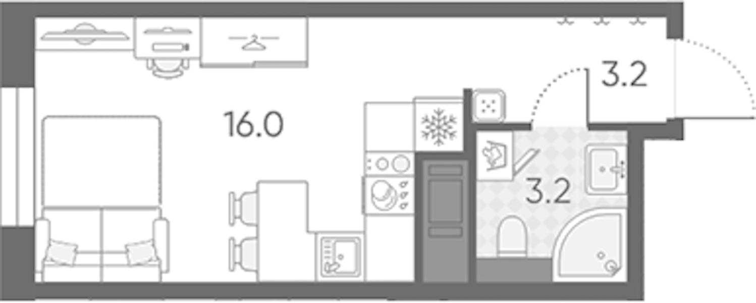Квартира-студия на 9-ом этаже 22,4 кв.м