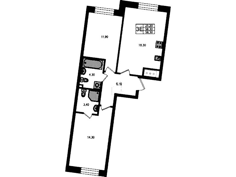 - Площадь58,3 м2