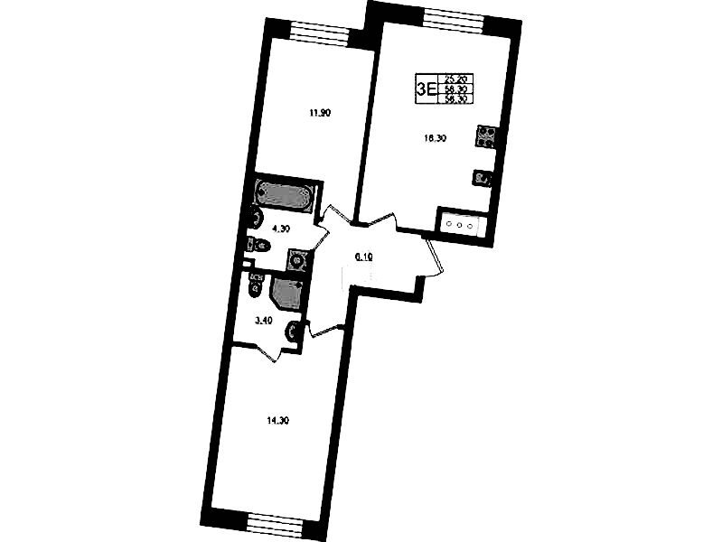 • Площадь58,3 м2