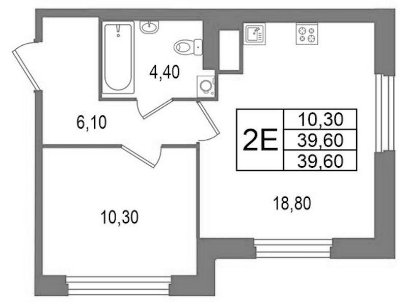 • Площадь39,6 м2