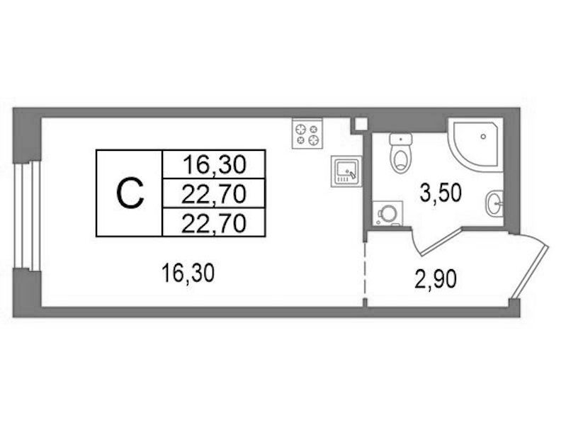 Квартира-студия на 3-ем этаже 22,7 кв.м