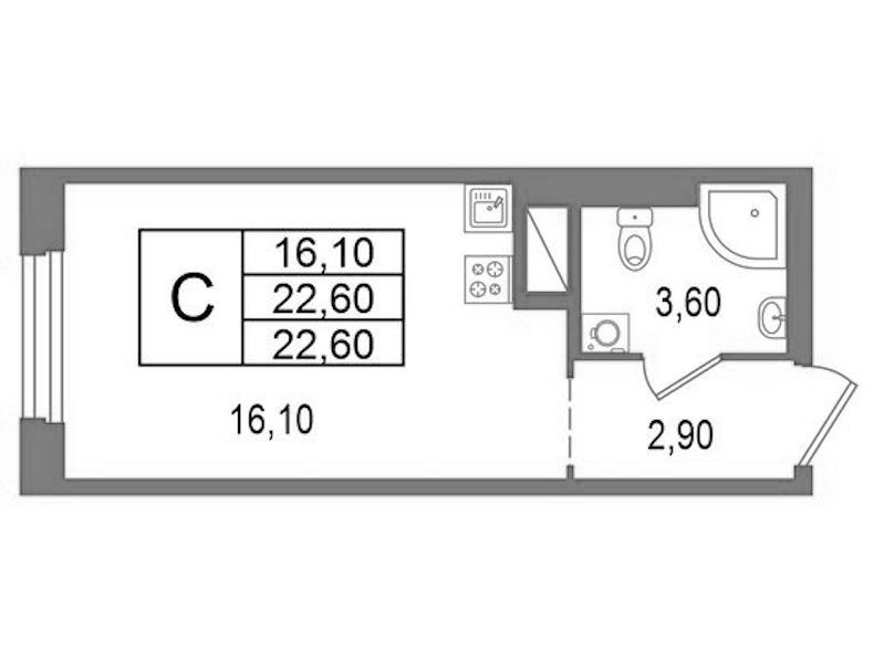 Квартира-студия на 7-ом этаже 22,6 кв.м