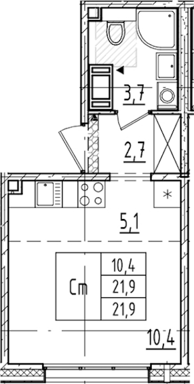 - Площадь21,9 м2