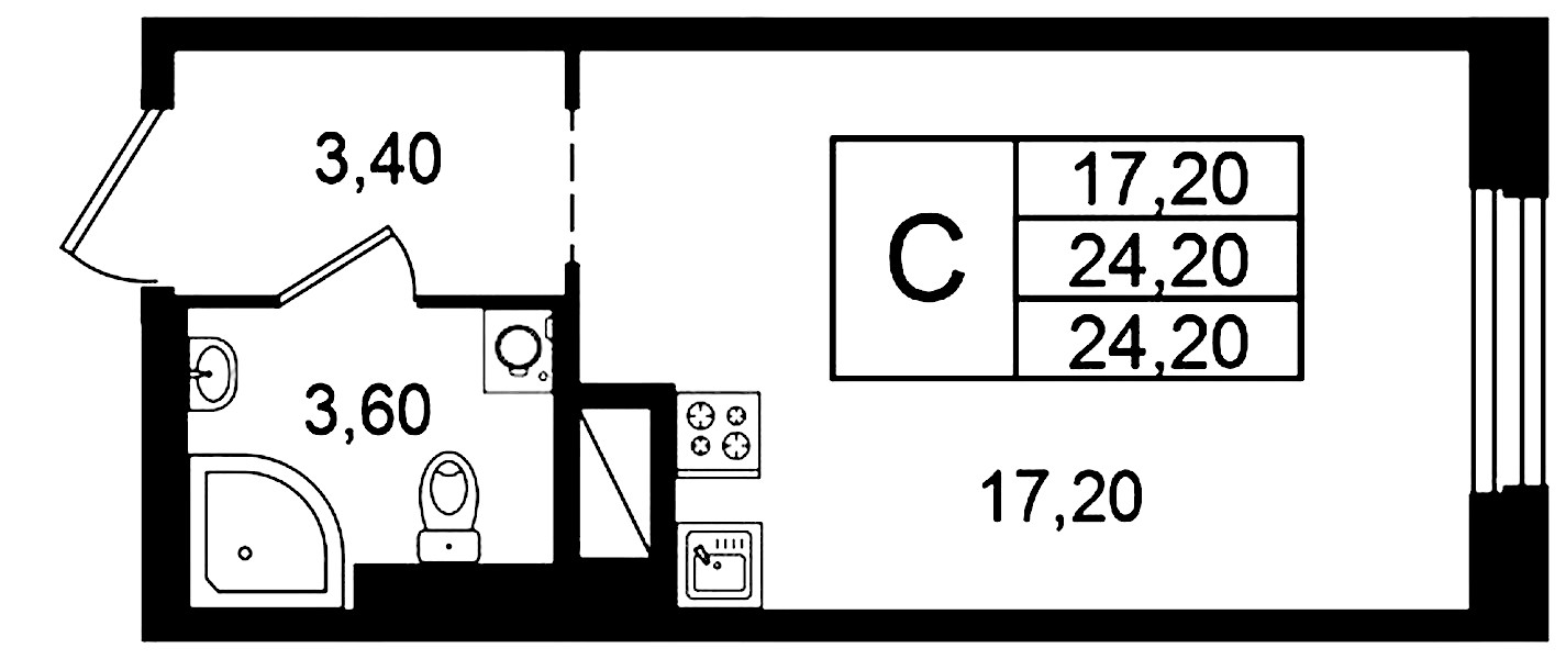 Квартира-студия на 8-ом этаже 24,2 кв.м