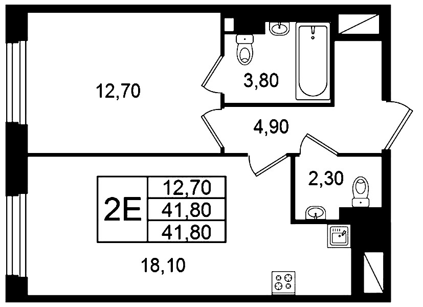 • Площадь41,8 м2