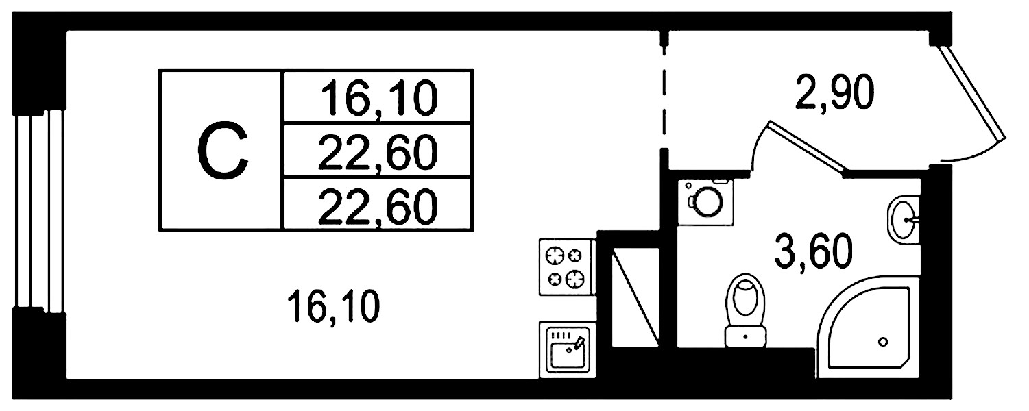 • Площадь22,6 м2