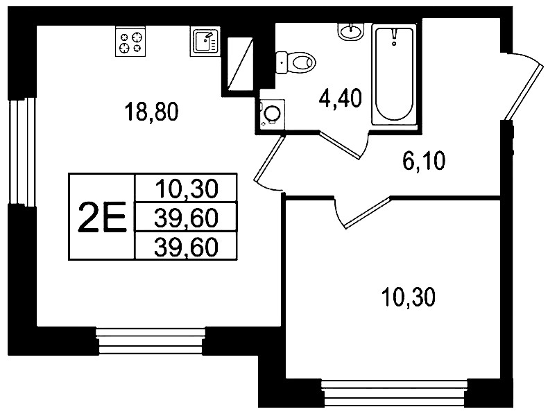 Однокомнатная квартира на 5-ом этаже 39,6 кв.м