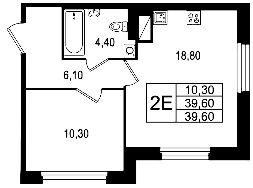 Однокомнатная квартира на 8-ом этаже 39,6 кв.м