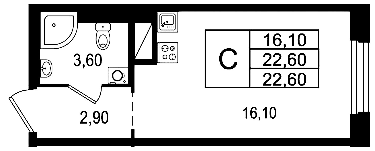 Квартира-студия на 5-ом этаже 22,6 кв.м