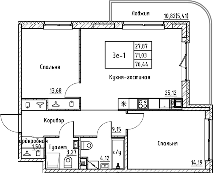 - Площадь76,44 м2