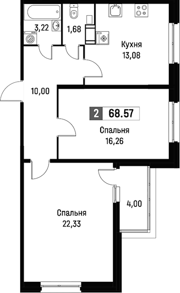 - Площадь68,57 м2