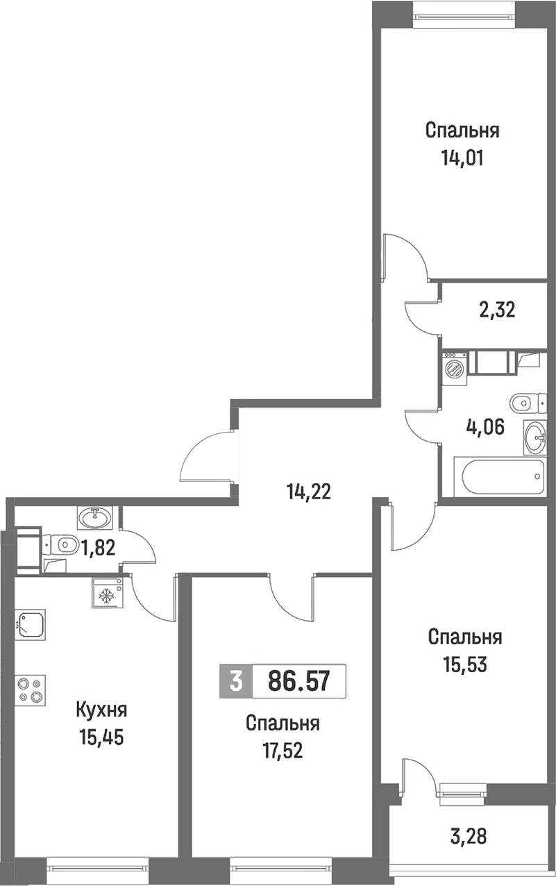 • Площадь86,57 м2