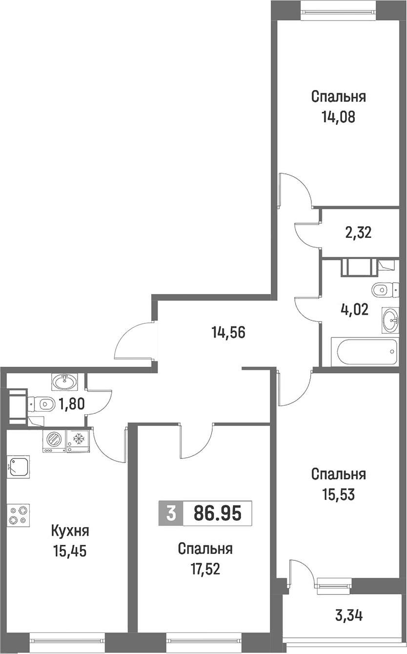 • Площадь86,95 м2