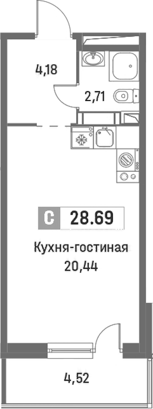 Квартира-студия на 15-ом этаже 28,69 кв.м
