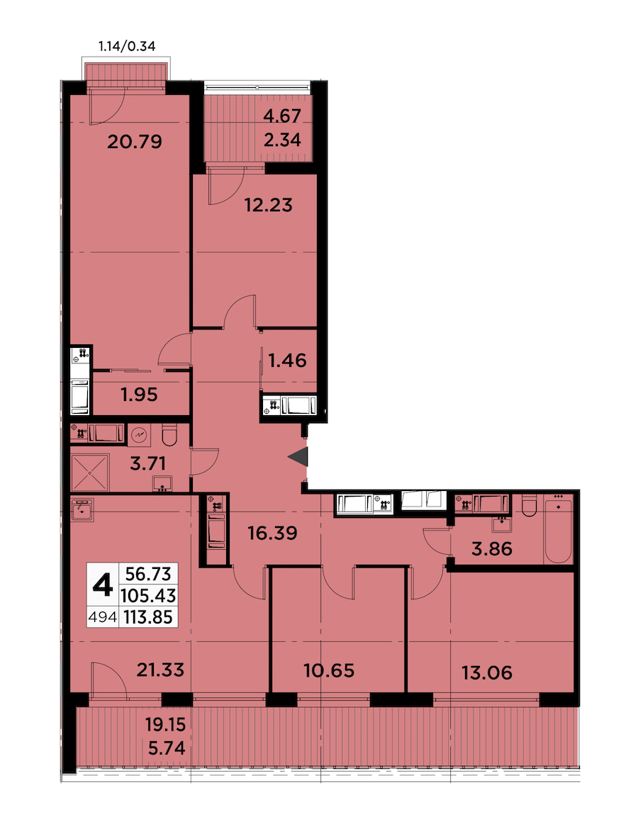 - Площадь113,85 м2