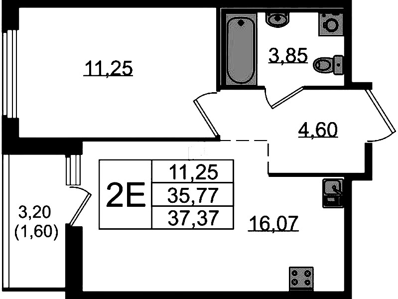 - Площадь37,37 м2
