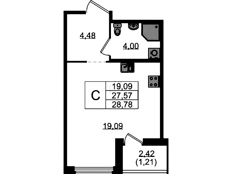 Квартира-студия на 2-ом этаже 28,78 кв.м
