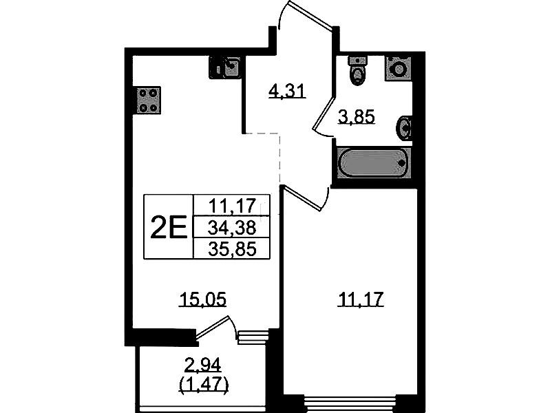 • Площадь35,85 м2