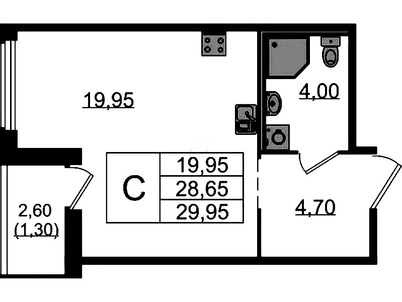 Квартира-студия на 12-ом этаже 29,95 кв.м