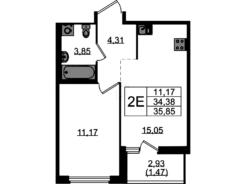 • Площадь35,85 м2